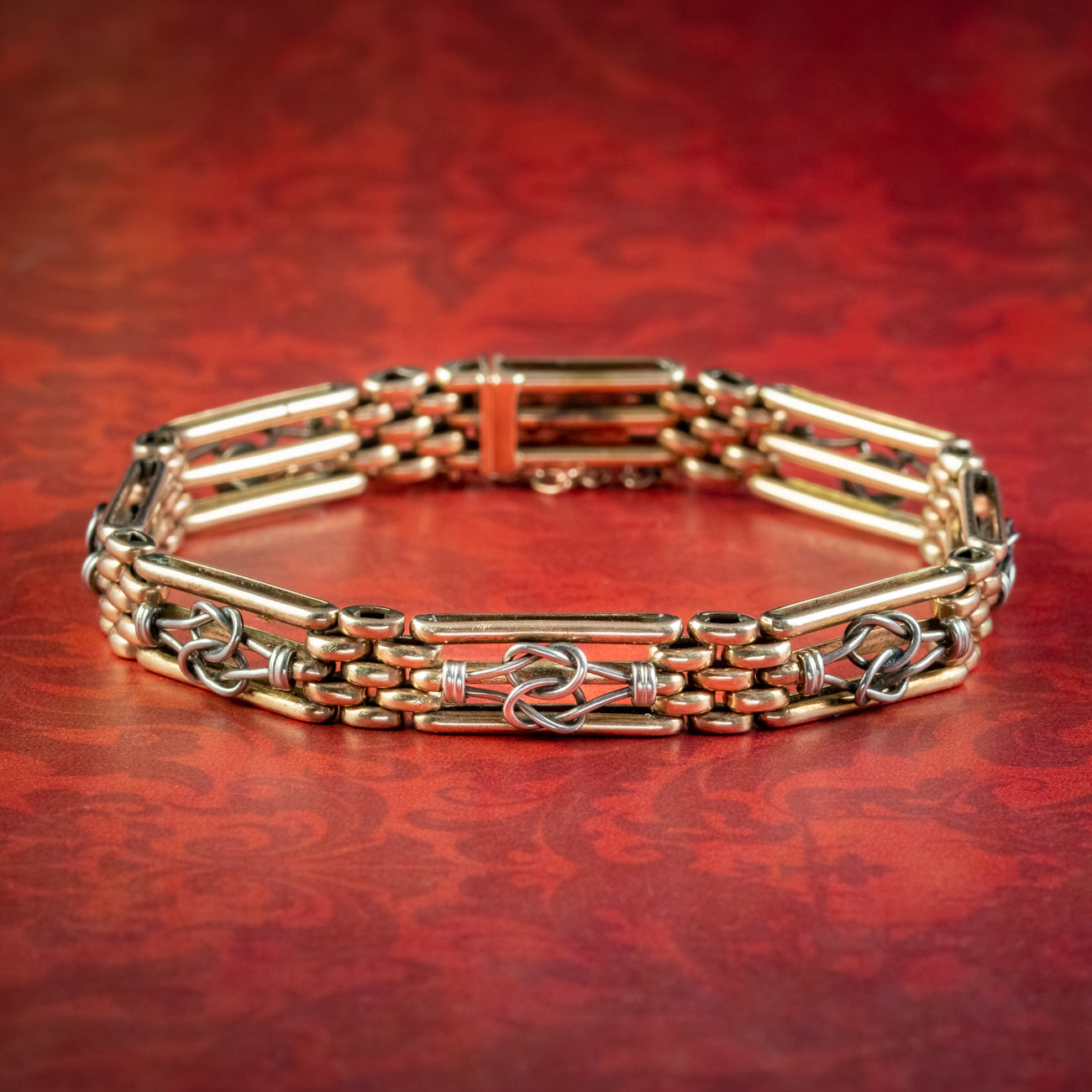 Antique Edwardian Love Knot Gate Bracelet Platinum 15ct Gold