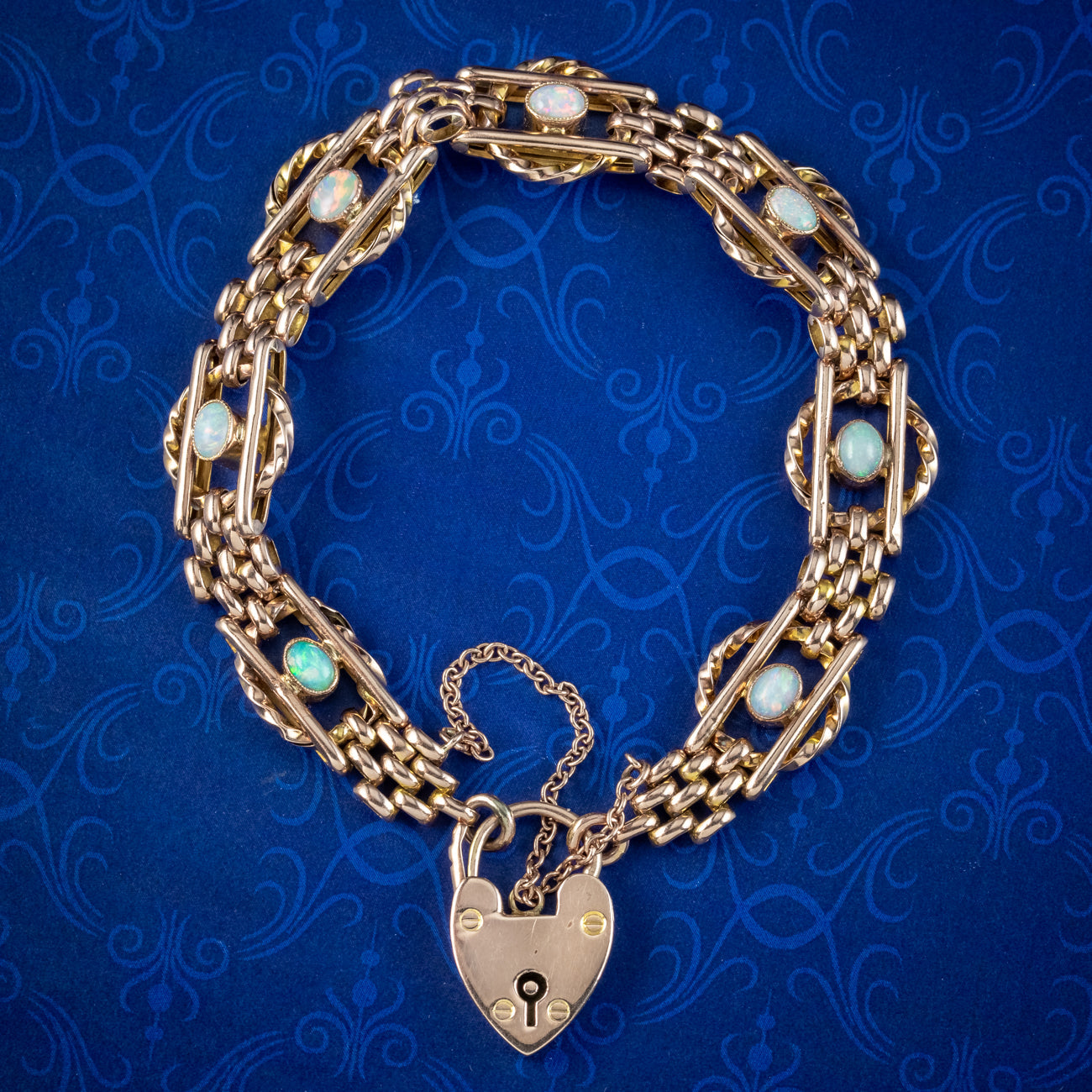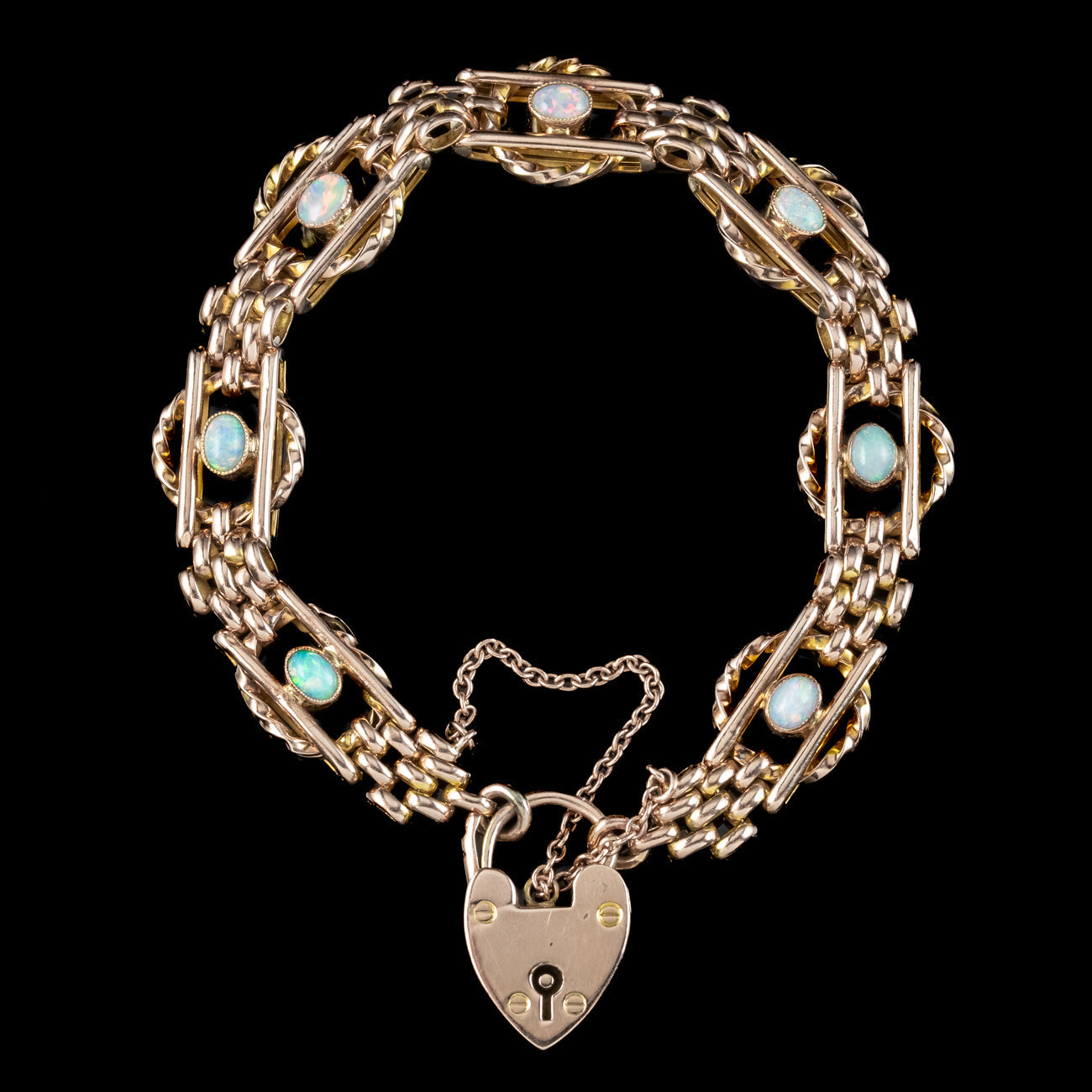 Antique Edwardian Opal Gate Bracelet 9ct Gold Dated 1905
