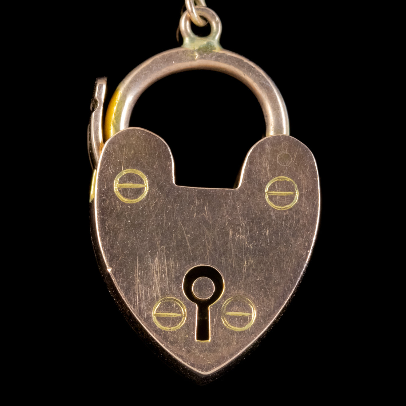 The piece is held securely around the wrist with a safety chain and heart padlock which was often gifted as a romantic token that symbolised love and commitment.