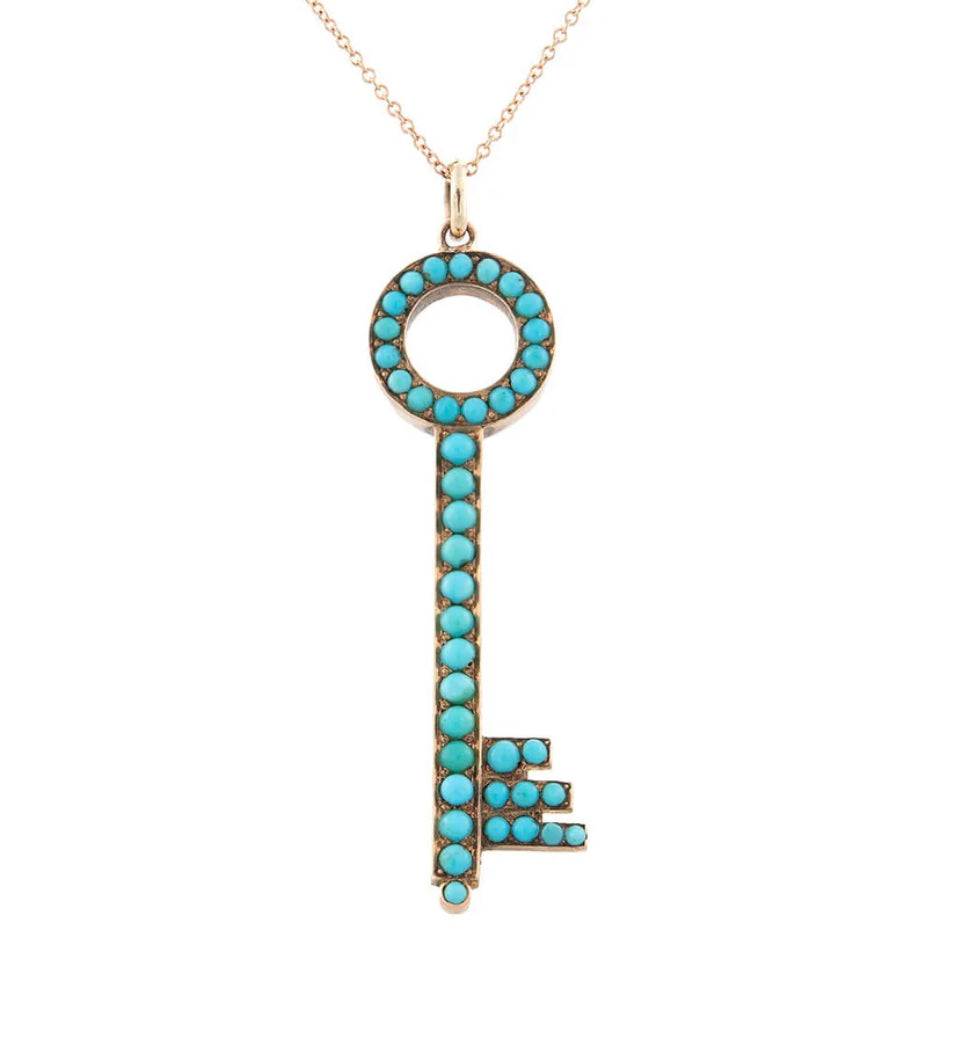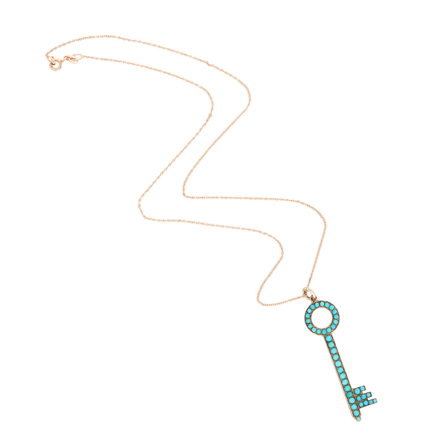 Victorian 14kt Rose Gold + Persian Turquoise Key Pendant Necklace