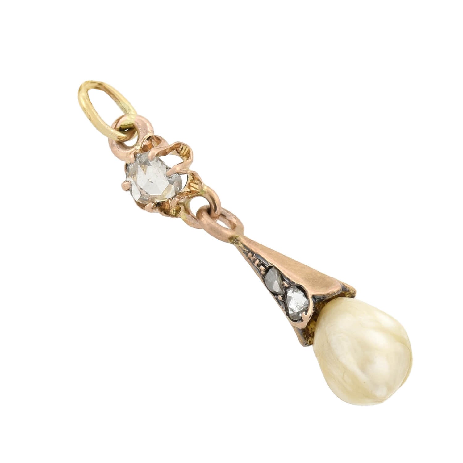 Victorian 14kt Rose Cut Diamond + Natural Pearl Pendant