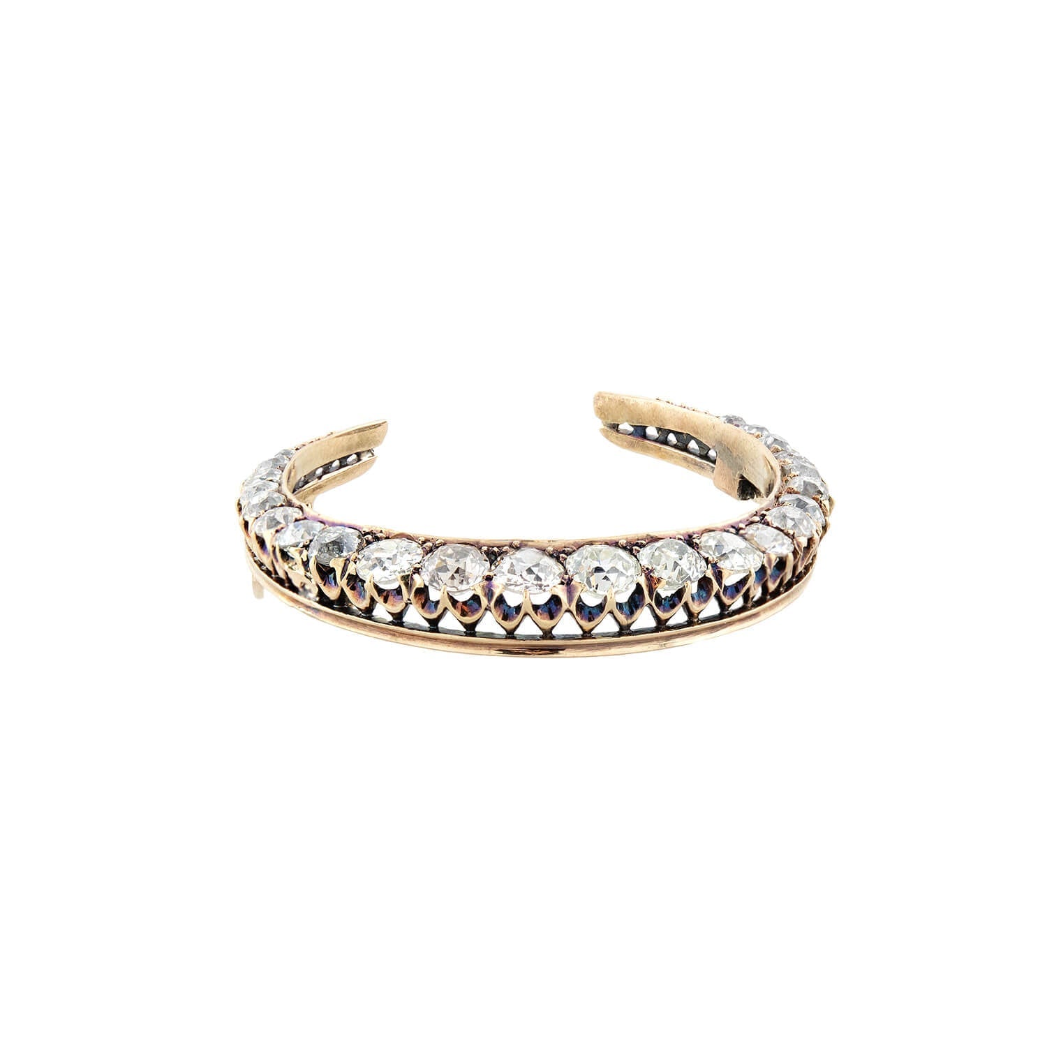 Victorian 18kt/Sterling Old Mine Cut Diamond Crescent Pendant 3ctw